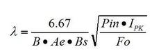 ●可由此大致判斷(λ=1)磁芯是否合適。高效率的設(shè)計(jì)要求磁應(yīng)力不能太緊張,也就是變壓器(包括繞組和磁芯)的發(fā)熱不要成為整個(gè)電源最突出的。當(dāng)熱應(yīng)力突出時(shí),應(yīng)增加磁芯的 Ae.B 或者使用更好的材質(zhì)。