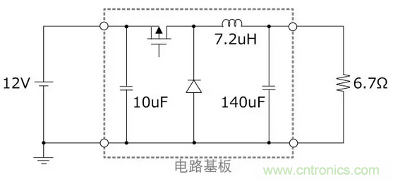 以12V → 5V 的降壓型DCDC轉(zhuǎn)換器為模型電路進行評估。