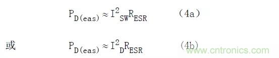 輸入輸出電容是功率開關或輸出整流器產(chǎn)生的高頻電流的唯一來源(或儲存處),所以通過觀察這些電流波形可以合理地確定流過這些電容ESR的電流。這個電流不可避免地在電容內(nèi)產(chǎn)生熱量。設計濾波電容的主要任務就是確保電容內(nèi)部發(fā)熱足夠低,以保證產(chǎn)品的壽命。式(4)給出了電容的ESR所產(chǎn)生的功率損耗的計算式。