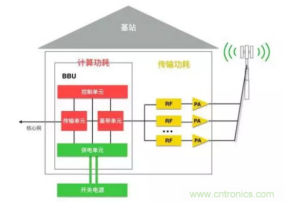 據(jù)專業(yè)人士分析,部署初期,5G網(wǎng)絡主要采用CU和DU合設+AAU的設備方案,即在基站側采用BBU+AAU單元的建設模式。其中,BBU單元安裝在機房或室外機柜內(nèi),集成RRU和大規(guī)模天線陣列功能的AAU單元安裝在室外天面。由于5G采用MIMO技術,BBU功耗將比現(xiàn)網(wǎng)4G系統(tǒng)的BBU功耗增加2倍,AAU功耗將比現(xiàn)網(wǎng)4G系統(tǒng)的AAU功耗增加2-3倍。