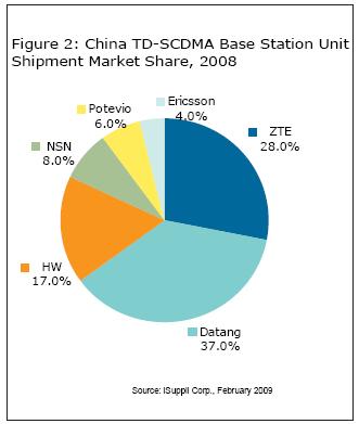 圖2所示為iSuppli公司對(duì)2008年TD-SCDMA基站市場份額的估計(jì)。