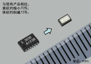 與現(xiàn)有產(chǎn)品(SG-3030LC:3.6 x 2.8 x 1.2t mm)相比,面積縮小了約70%,體積削減了約75%,為電子儀器設(shè)備的小型化及高功能化做出貢獻(xiàn)。