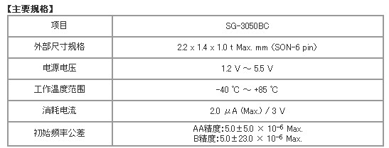 在性能方面,工作電壓為1.2~5.5 V,初始頻率公差為5.0±5.0 x 10-6,比原有的SG-3030系列更為提高。