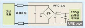 原則上,RFID的電源是集成在AFE的內部,似乎遠離了電流分析的危險,然而實際上并非如此。圖4顯示了RFID接觸法測試的原理圖:通過在RFID天線和串聯(lián)的分壓電阻兩端直接加載符合規(guī)格的交流信號,RFID負載反饋信號可以百倍于無線模式下的信號強度直接疊加在加載的交流信號上。由于芯片的功耗變化與負載調制在本質上是相同的,因此,如果AFE的電源設計不恰當,RFID微處理執(zhí)行不同內部處理的狀態(tài)可能在串聯(lián)電阻的兩端交流信號上反映出來。