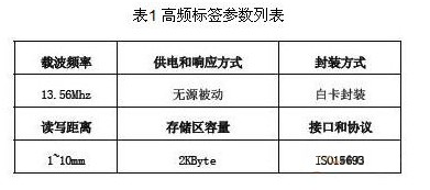 應(yīng)用方案中共涉及到高頻(13.56MHz)超高頻(915MHz)兩種不同類型的RFID標(biāo)簽,所選擇的RFID標(biāo)簽規(guī)格如表1、表2 所示。