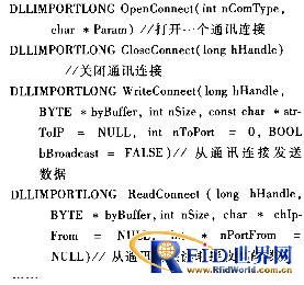 (1)底層數(shù)據(jù)通訊接口組件:負責數(shù)據(jù)通訊的鏈路層和物理層,是讀寫器與應用軟件通訊的物理基礎(chǔ),在應用邏輯上,與應用通訊協(xié)議無關(guān)。所以,底層數(shù)據(jù)通訊應獨立設(shè)計相對固定的接口,與高層應用分離。