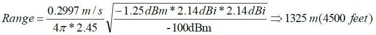 例如,如果使用弗里斯方程式計(jì)算一個2.45GHz 無線鏈路的最大通信距離,其發(fā)射功率為-1.25dBm,接收靈敏度為-100dBm 以及兩個天線增的益都是2.14dBi。需要注意的是,2.14dBi 是偶極天線的理論增益,而考慮損耗時一般達(dá)不到這一值。
