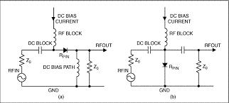圖2. RF信號(hào)通過串聯(lián)(a)或并聯(lián)(b)配置的PIN二極管衰減