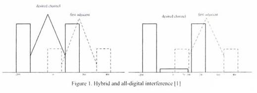 HD無(wú)線技術(shù)不需要新的頻譜,因?yàn)樗衫矛F(xiàn)有的AM和FM頻段。在HD無(wú)線廣播業(yè)內(nèi),存在混合與全數(shù)字兩種形式?;旌夏J绞窃趦蓚€(gè)鄰近邊頻帶上傳輸數(shù)字信號(hào),在兩個(gè)頻帶之間播送模擬信號(hào)。全數(shù)字模式消除了模擬信道,采用全數(shù)字傳輸。與FM和AM信號(hào)獲取相比,在接收這種信號(hào)時(shí)涉及到大量的數(shù)字信號(hào)處理。對(duì)于數(shù)字邊頻帶,去除鄰近的模擬信道是必需的(圖1),更復(fù)雜的調(diào)制方案涉及到正交頻分復(fù)用(OFDM)。