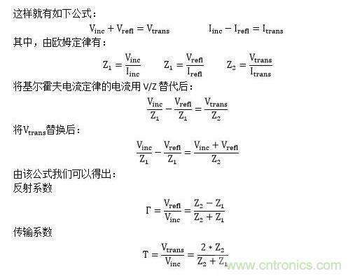 當(dāng)信號穿越阻抗不連續(xù)的點(diǎn)時(shí),會產(chǎn)生反射電壓與電流,從而使得分界面兩邊的電壓和電流相等(基爾霍夫定律)。