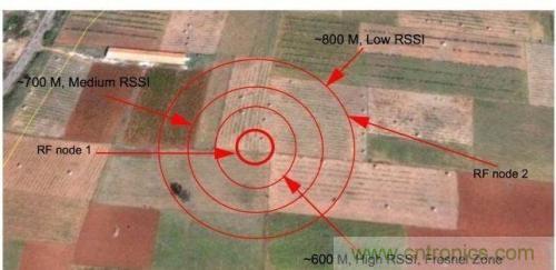 現(xiàn)在,我們將節(jié)點2替換為增益(輸出功率)為0dB的MRF24J40MA模塊。由于節(jié)點1的接收靈敏度為-95dBm,故衰落余量為 35dBm(95dB~60dB)。此外,還存在因環(huán)境[在視距(LoS)內(nèi)]導(dǎo)致的損耗(衰落),這會使信號級別進一步降低20dB,此時的通信僅有 15dB到20dB的附加增益。