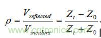 等式假設信號在特征阻抗為Z0的傳輸線上傳送遇到了不連續(xù)的阻抗Zt。注意如果Z0=Zt,反射系數為0,意味著沒有反射。Z0= Zt這種情況就稱為匹配的端接。