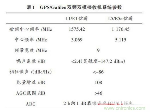 在參考接收機的性能要求的基礎上,設計GPS接收機射頻前端芯片的各項系統(tǒng)指標見表1.