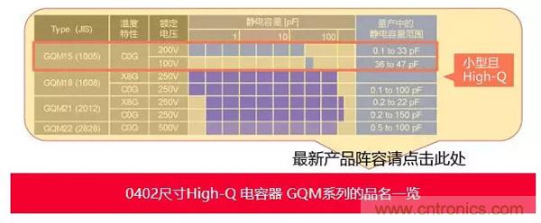 村田制作所的High-Q電容器除傳統(tǒng)的0603尺寸外,還新增0402尺寸到產(chǎn)品陣容。通過獨(dú)創(chuàng)的構(gòu)造、材料,即使靜電容量值很低,與標(biāo)準(zhǔn)規(guī)格產(chǎn)品(GRM系列)相比,也可實(shí)現(xiàn)高Q值。因兼具匹配用電容器的小型化和高Q值,有助于實(shí)現(xiàn)高頻PA電路設(shè)計(jì)的高密度化。