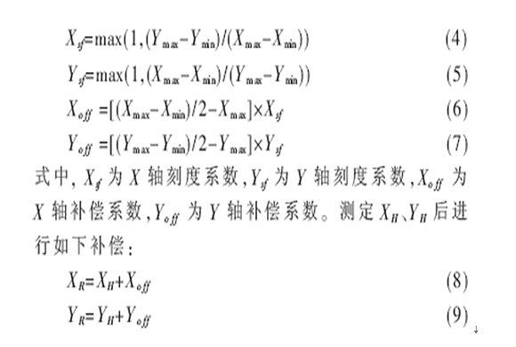 其中,(XR、YR)為經過校正的值,將它們帶入式(3)就可以得到方位角。