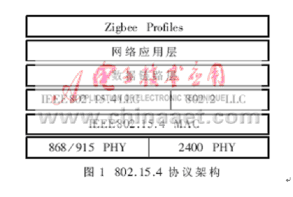IEEE802.15.4滿足國際標準組織(ISO)開放系統(tǒng)互連(OSI)參考模式。它定義了單一的MAC層和多樣的物理層(如圖1所示),表1中概括了802.15.4的一些特點。Zigbee聯(lián)盟制定了MAC層以上協(xié)議,其協(xié)議套件由高層應用規(guī)范、應用會聚層、網(wǎng)絡層、數(shù)據(jù)鏈路層和物理層組成。