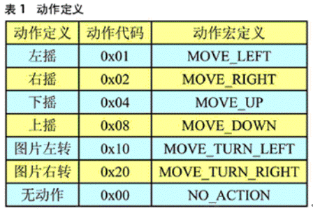 系統(tǒng)還為每個(gè)動(dòng)作定義了相應(yīng)的動(dòng)作代碼,見(jiàn)表1。