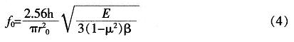 經(jīng)過分析,綜合考慮設(shè)計(jì)的要求,初步設(shè)定:h=20μm,R=200μm。其固有頻率可以按下式計(jì)算: