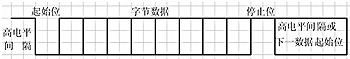 數(shù)據(jù)傳輸時(shí)使用單線串行輸出,用口線模擬串行發(fā)送,發(fā)送字節(jié)時(shí)在口線上依次發(fā)送如圖4所示數(shù)據(jù)(數(shù)據(jù)為0時(shí)拉低口線電平,數(shù)據(jù)為1時(shí)拉高口線電平),位持續(xù)時(shí)間根據(jù)波特率計(jì)算,本應(yīng)用中設(shè)定波特率為9600b/s。當(dāng)沒有數(shù)據(jù)發(fā)送時(shí),輸出口線上維持高電平。