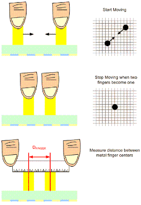 手指間距:手指間距定義為,當(dāng)觸摸屏控制器測(cè)量?jī)芍皇种傅奈恢脮r(shí),兩只手指中心點(diǎn)之間在屏幕上的最短距離。手指間距測(cè)量方法(圖2),是將兩個(gè)模擬或機(jī)械手指置于面板上,然后逐漸拉近兩只手指的距離,直到系統(tǒng)測(cè)到兩只手指為一只手指為止。有些觸摸屏供貨商的手指間距是指邊緣至邊緣的距離,有些則是中心點(diǎn)之間的距離。10毫米機(jī)械手指的10毫米手指間距,表明有多只手指觸碰到屏幕,或是手指之間的距離為10毫米,實(shí)際狀況取決于觸控控制器的規(guī)格定義。如果沒(méi)有良好的手指間距,就無(wú)法設(shè)計(jì)出多點(diǎn)觸控解決方案。對(duì)于仿真鍵盤而言,手指間距尤其重要,因?yàn)橐话阍谑褂梅抡骀I盤時(shí),手指在屏幕上的間距通常很短。