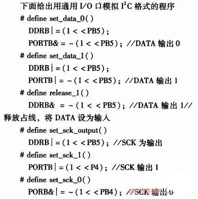 微處理器采用二線串行數(shù)字接口和傳感器進(jìn)行通信,硬件接口非常簡單;然而,通信協(xié)議是芯片廠家定義的,所以在軟件設(shè)計中,需要用微處理器通用I/O口模擬通信協(xié)議.