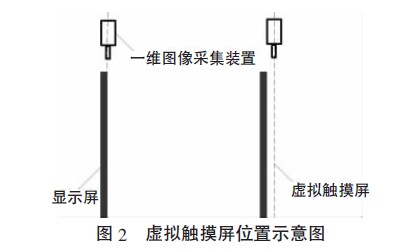 設(shè)計(jì)了一種虛擬觸摸屏系統(tǒng),其特色在于由圖像采集裝置獲取的一維圖像數(shù)據(jù)來(lái)確立用戶手指觸摸二維虛擬觸摸屏上的位置坐標(biāo)。前提是一維圖像采集裝置的安裝位置,它從根本上解決了大屏幕觸摸屏中人體遮擋手指無(wú)法識(shí)別的問題,且其進(jìn)行的是一維數(shù)據(jù)的處理,相比于二維圖像處理算法更加簡(jiǎn)單。