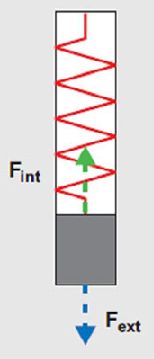 例如,圖1顯示了安裝于頂部位置的一個傳感器,與此同時底部正受到一個外力的拉拽,即Fext.在使用加速計的情況下,固定端(頂部)會粘附在要測量加速度的物體上,同時外力為粘附于另一端(底部)的質(zhì)量的慣性,而這一端不斷想要保持靜止。就固定于頂端的參考坐標系而言(假設傳感器充當?shù)氖且粋€彈簧,其具有很高的彈簧系數(shù) K),偏斜x會形成一種反作用力: