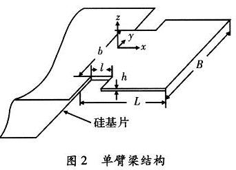 Aasys是一個可在微機(jī)上使用的綜合性有限元軟件,是微機(jī)電系統(tǒng)設(shè)計中廣泛使用的有限元分析軟件。通過有限元的分析計算可以預(yù)測懸臂梁上引力分布、固有頻率、可測最大加速度等,進(jìn)而指導(dǎo)梁結(jié)構(gòu)參數(shù)的選取。經(jīng)過對梁結(jié)構(gòu)有限元的計算分析選取單臂梁、雙臂梁結(jié)構(gòu)參數(shù),如表1所示。
