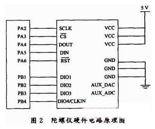 陀螺儀硬件電路原理圖如圖2所示,選用LM3S8962自帶的SPI硬件接口對ADIS16365進行操作,在電路設(shè)計中只需要直接將LM3S8962的SPI硬件I/O接口與ADIS16365相應(yīng)的接口連接起來。