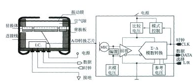 數(shù)字傳聲器結構及模數(shù)轉換芯片原理見圖2.