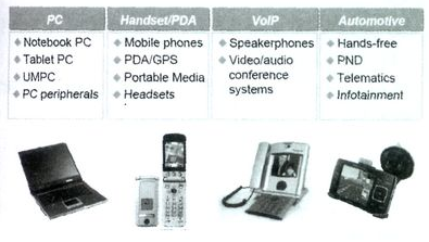 數(shù)字ECM或MEMS傳聲器和傳統(tǒng)的ECM傳聲器相比,有著不可取代的優(yōu)勢。首先,移動設備向小型化數(shù)字化發(fā)展,急需數(shù)字拾音器件和技術與之配套;第二,數(shù)字設備包含的功能單元越來越多,如筆記本式計算機,集成了藍牙和WiFi無線功能,傳聲器的安裝位置距離這些干擾源很近,設備對傳聲器抗干擾性能的要求越來越高;第三,隨著三網(wǎng)合一的發(fā)展,需要上網(wǎng)、視頻和語音傳輸可以同時進行,這在移動設備中通常會遇到環(huán)境背景噪聲和線路回聲的影響;第四,從提高生產(chǎn)效率的角度考慮,希望對傳聲器元件采用SMT工藝焊接組裝。數(shù)字傳聲器尤其是具有集成電路本質(zhì)的微機電( MEMS)數(shù)字傳聲器更加適合SMT焊接組裝工藝,為了解決系統(tǒng)各種射頻干擾對語音通信產(chǎn)生的噪聲,數(shù)字傳聲器尤其適用于通過算法編程達到陣列拾音技術的實現(xiàn),對于抑制環(huán)境背景噪聲和消除通話時的線路回聲方面具有突出的技術優(yōu)勢,數(shù)字傳聲器輸出接口格式同數(shù)字處理系統(tǒng)具有高度的接口兼容性。數(shù)字傳聲器的應用見圖7~8.