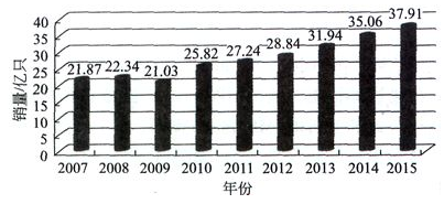 圖10 2007 - 2015年全球微型駐極體傳聲器銷量發(fā)展趨勢(2011年后為預測)