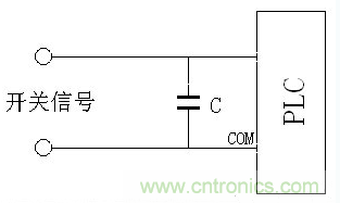 有時(shí)PLC或其它控制器的開(kāi)關(guān)量輸入由于受外界干擾影響而瞬間輸入錯(cuò)誤,導(dǎo)致PLC產(chǎn)生誤動(dòng)作,這時(shí)在PLC的輸入端并上一個(gè)0.1uF的小電容就可以消除這種干擾,如下圖所示: