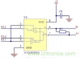 單片機(jī)C8051F020的P2.0、P2.1及P3.7通過(guò)MAX485與PC機(jī)相連,進(jìn)行串行通信,如圖4所示。P3.7控制MAX485的狀態(tài),接收或發(fā)送,用軟件控制。P2.1為單片機(jī)的串行輸入端,接收PC機(jī)通過(guò)MAX485向單片機(jī)發(fā)送的數(shù)據(jù),P2.0為單片機(jī)的串行輸出端,通過(guò)MAX485發(fā)送給PC機(jī)。