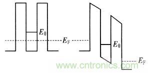 使用介觀壓阻效應原理代替壓阻原理來檢測壓力,將圓膜片上的的壓敏電阻換成GaAs/A1As/InGaAs DBRT結構薄膜。用傳遞矩陣法計算該薄膜在沿生長方向的應力變化下的輸出響應,通過整個結構的隧穿電流密度可表示為: