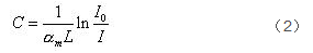 根據(jù)比爾朗伯定律,輸出光強度 、輸入光強度 和氣體濃度 之間的關系為: