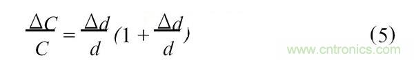 最后要說明的是關(guān)于非線性的問題。由下圖我們可以看到變間隙式電容傳感器相對輸出表達(dá)式為: