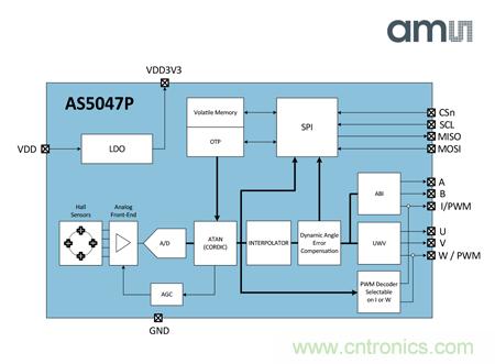 【導(dǎo)讀】近日,ams發(fā)布47系列最新磁性旋轉(zhuǎn)位置傳感器AS5047P。該傳感器可實現(xiàn)高轉(zhuǎn)速下、全溫度范圍內(nèi)的最高精確度,可用于電機(jī)與運(yùn)動控制。AS5047P具備遞增式ABI輸出,性能更優(yōu)于電機(jī)及運(yùn)動控制系統(tǒng)中的光學(xué)編碼器及旋轉(zhuǎn)變壓器,在實現(xiàn)高精度性能的同時能降低系統(tǒng)成本。