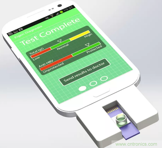 igen Lifescience團隊由斯坦福大學(xué)4名學(xué)生和2名顧問組成,利用一年時間研發(fā)出一款微型設(shè)備,在不到10分鐘的時間內(nèi)就能測試出患者是否患有乙型肝炎。該設(shè)備主要利用智能手機的微處理器,成本低廉,易于攜帶。這款設(shè)備主要針對醫(yī)療資源緊張的發(fā)展中國家而設(shè)計,能夠快速確定需要優(yōu)先治療的患者。將來,該設(shè)備的檢測范圍可能得到進一步拓展,如檢測HIV或心臟病等。