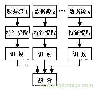 2.特征層融合:特征層融合屬于中間層次,先從每種傳感器提供的觀測(cè)數(shù)據(jù)中提取的有代表性的特征,這些特征融合成單一的特征向量,然后運(yùn)用模式識(shí)別的方法進(jìn)行處理。這種方法的計(jì)算量及對(duì)通信帶寬的要求相對(duì)降低,但由于部分?jǐn)?shù)據(jù)的舍棄使其準(zhǔn)確性有所下降。