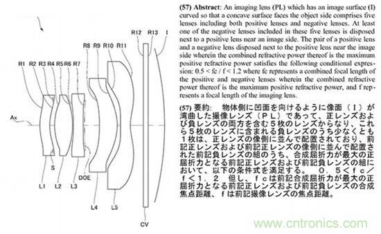 緊接著在2012年12月索尼曲面?zhèn)鞲衅鲗?zhuān)用鏡頭專(zhuān)利公布,針對(duì)1.4“及以下傳感器進(jìn)行設(shè)計(jì),結(jié)合索尼曲面CMOS傳感器,可以有效消除像場(chǎng)彎曲現(xiàn)象,改善邊緣畫(huà)質(zhì)。