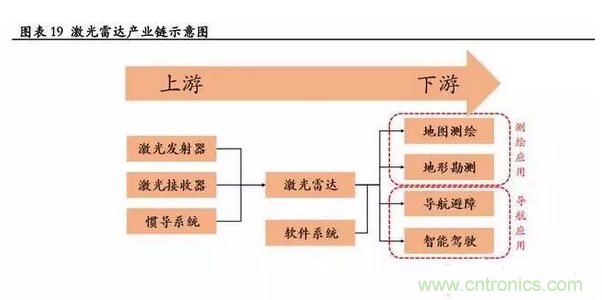 實(shí)際上,產(chǎn)業(yè)鏈的上游制造元件成本不高,不是構(gòu)成成本的主要因素;且因?yàn)榧す饫走_(dá)是下游測繪、導(dǎo)航等應(yīng)用的核心部件,目前產(chǎn)能稀缺導(dǎo)致供不應(yīng)求,呈現(xiàn)賣方市場,對下游有很強(qiáng)的定價(jià)權(quán),因此該產(chǎn)業(yè)鏈主要附加值在于激光雷達(dá)部分。