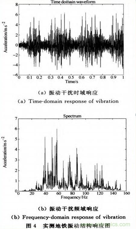 地下隧道環(huán)境內(nèi)振動(dòng)噪聲主要來(lái)源于機(jī)車(chē)行駛過(guò)程中產(chǎn)生的振動(dòng)。文獻(xiàn)指出,當(dāng)前地鐵產(chǎn)生的振動(dòng)噪聲的頻率一般在20---200 Hz,峰值一般出現(xiàn)在20~80HZ。