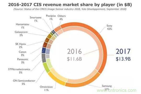 傳感器(CIS)已成為半導(dǎo)體產(chǎn)業(yè)的關(guān)鍵器件。這不僅是因?yàn)樗婕暗募夹g(shù)及其帶來的市場營收,而是因?yàn)楝F(xiàn)在已經(jīng)無法想象智能手機(jī)、汽車甚至是房屋如果沒有攝像頭的支持會怎樣。根據(jù)Yole最新發(fā)布的《CMOS圖像傳感器產(chǎn)業(yè)現(xiàn)狀-2018版》報(bào)告,2017年CIS產(chǎn)業(yè)的市場規(guī)模達(dá)到了139億美元,預(yù)計(jì)未來5年的復(fù)合年增長率(CAGR)將達(dá)到9.4%。