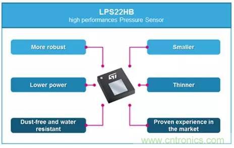 氣壓傳感器:LPS22HBTR,測量范圍:260 to 1260 mbar,ODR 支持1Hz 到75Hz,功耗:4uA,可以用于海拔信息測量。