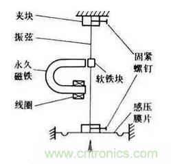 振弦式壓力傳感器的敏感元件是拉緊的鋼弦,敏感元件的固有頻率與拉緊力的大小有關(guān)。弦的長度是固定的,弦的振動頻率變化量可用來測算拉力的大小,即輸入是力信號,輸出的是頻率信號。振弦式壓力傳感器分為上下兩個部分組成,下部構(gòu)件主要是敏感元件組合體。上部構(gòu)件是鋁殼,包含一個電子模塊和一個接線端子,分成兩個小室放置,這樣在接線時就不會影響電子模塊室的密封性。