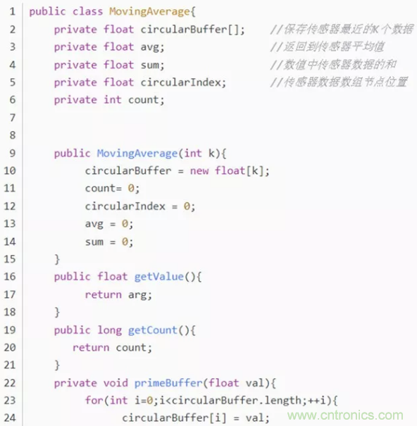 保留傳感器數(shù)據(jù)流中最近的K個數(shù)據(jù),返回它們的平均值。其中,K表示平均“窗口”的大?。?/div>