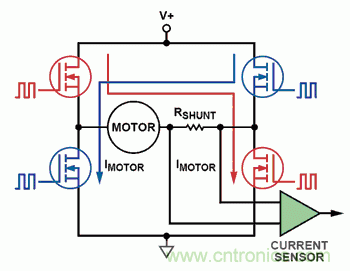 圖2 典型H橋電機控制中的高壓側(cè)分流