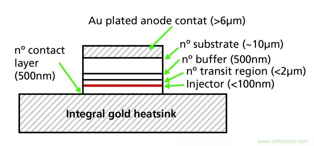 圖1:具有一體化散熱結(jié)構(gòu)及熱注入功能的GaAs類耿氏二極管(來源:[3])