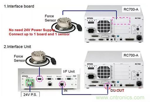 以愛(ài)普生為例,在硬件面,除了手臂上預(yù)留連接接口之外,如果能直接在手臂控制器上內(nèi)建力覺(jué)傳感器接口,就有機(jī)會(huì)幫用戶省下額外采購(gòu)力覺(jué)感測(cè)處理器的成本。 如果是在比較單純的應(yīng)用情境,例如一支手臂搭配一顆力覺(jué)傳感器的狀況下,愛(ài)普生的手臂控制器(CU Controller)可以透過(guò)安裝適配卡的方式,直接與力覺(jué)傳感器建立聯(lián)機(jī)。 但如果應(yīng)用需要用到多顆力覺(jué)傳感器,則可以采用額外的一對(duì)多處理器,再與手臂控制器連接(圖3)。
